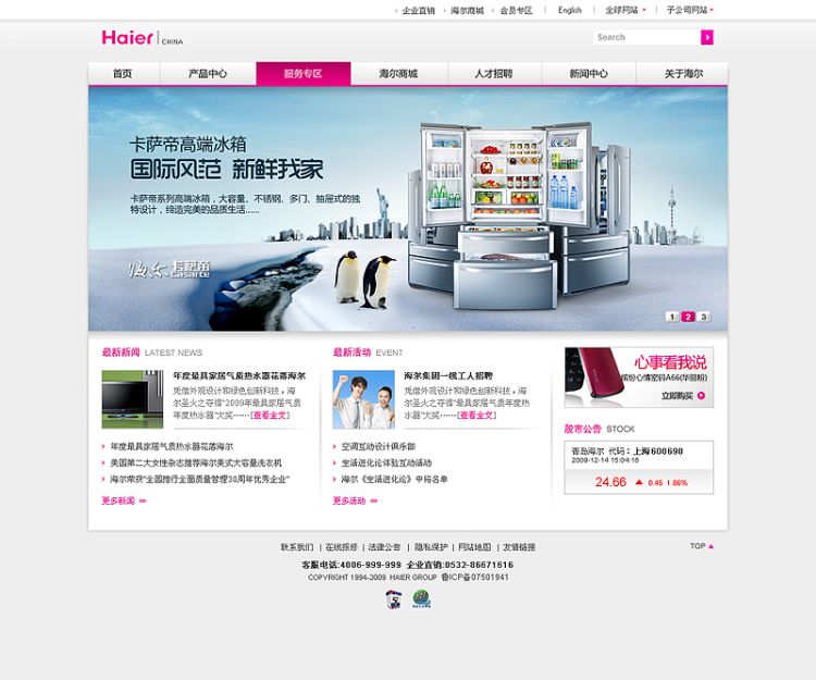 【海爾集團(tuán)】是中國青島的一家大型的家電制造企業(yè),在世界同行業(yè)中處于技術(shù)領(lǐng)先水平,海爾品牌是中國最具價(jià)值的品牌,海爾集團(tuán)是中國最具世界競爭力的家電集團(tuán),連續(xù)多年列中國企業(yè)500強(qiáng)前30位。海爾集團(tuán)在首席執(zhí)行官張瑞敏確立的名牌戰(zhàn)略指導(dǎo)下,先后實(shí)施名牌戰(zhàn)略、多元化戰(zhàn)略和國際化戰(zhàn)略,現(xiàn)在海爾在歐美、中東、日本等國家和地區(qū)都有子公司或銷售網(wǎng)點(diǎn),已進(jìn)入全球化品牌戰(zhàn)略階段。