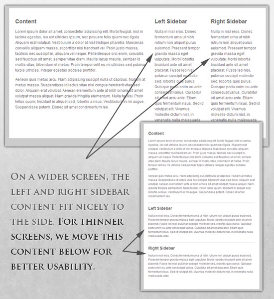 | 1 2 3 4 5 6 7 8 9 10 11 12 13 14 15 16 17 18 19 20 21 22 23 24 25 | #wrapper{ ????width:90%; } ? #content{ ????width:100%; } ? #sidebar-left{ ????width:100%; ????clear:both; ? ????/* Additional styling for our new layout */ ????border-top:1pxsolid#ccc; ????margin-top:20px; } ? #sidebar-right{ ????width:100%; ????clear:both; ? ????/* Additional styling for our new layout */ ????border-top:1pxsolid#ccc; ????margin-top:20px; } |