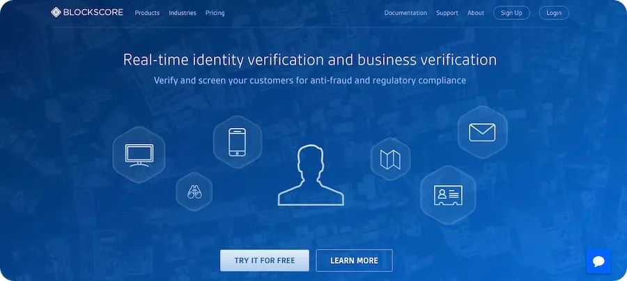 BlockScore是一個解決身份盜用的身份驗證服務網(wǎng)站。 網(wǎng)站設計也使用城市的鳥瞰圖,白色文字和圖標,充滿質感。