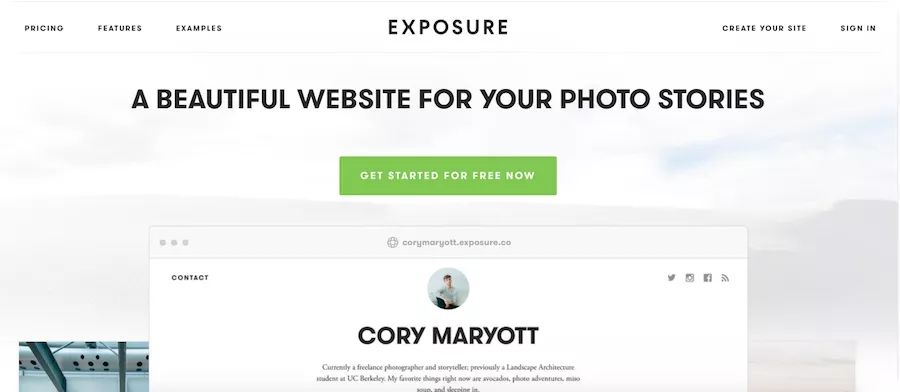 如果你喜歡用圖像來講故事,那么你不能錯過曝光。 與傳統(tǒng)的照片托管和演示平臺不同,Exposure的優(yōu)勢在于使用圖像呈現(xiàn)故事的全部功能以及最終的高品質閱讀體驗。 頁面介紹令人耳目一新,呼吸強烈。 中間的CTA按鈕清楚地呼叫用戶:開始記錄你的美妙旅程。
