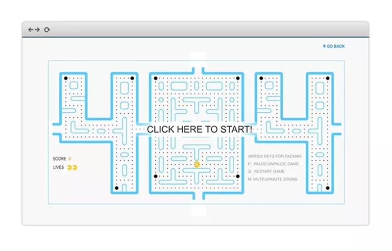 同樣的404頁(yè)被制作成小游戲。 該公司選擇了經(jīng)典的街機(jī)游戲Pacman。