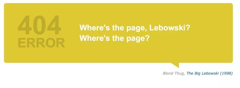 電影評(píng)論網(wǎng)站IMDB在其自己的404頁(yè)面上使用來(lái)自不同電影的經(jīng)典線條。