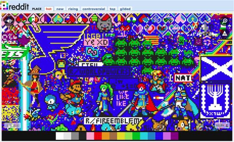 這有點(diǎn)像今年的愚人節(jié)Reddit推出的一個(gè)活動(dòng),讓世界各地的網(wǎng)友為空白畫布著色。