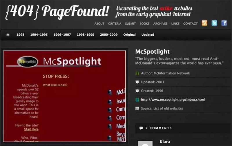 這個(gè)網(wǎng)站被稱為“找到404頁(yè)面”,主要用于歸檔已從服務(wù)器中刪除的舊網(wǎng)頁(yè),允許用戶瀏覽從互聯(lián)網(wǎng)歷史中消失的網(wǎng)頁(yè)。
