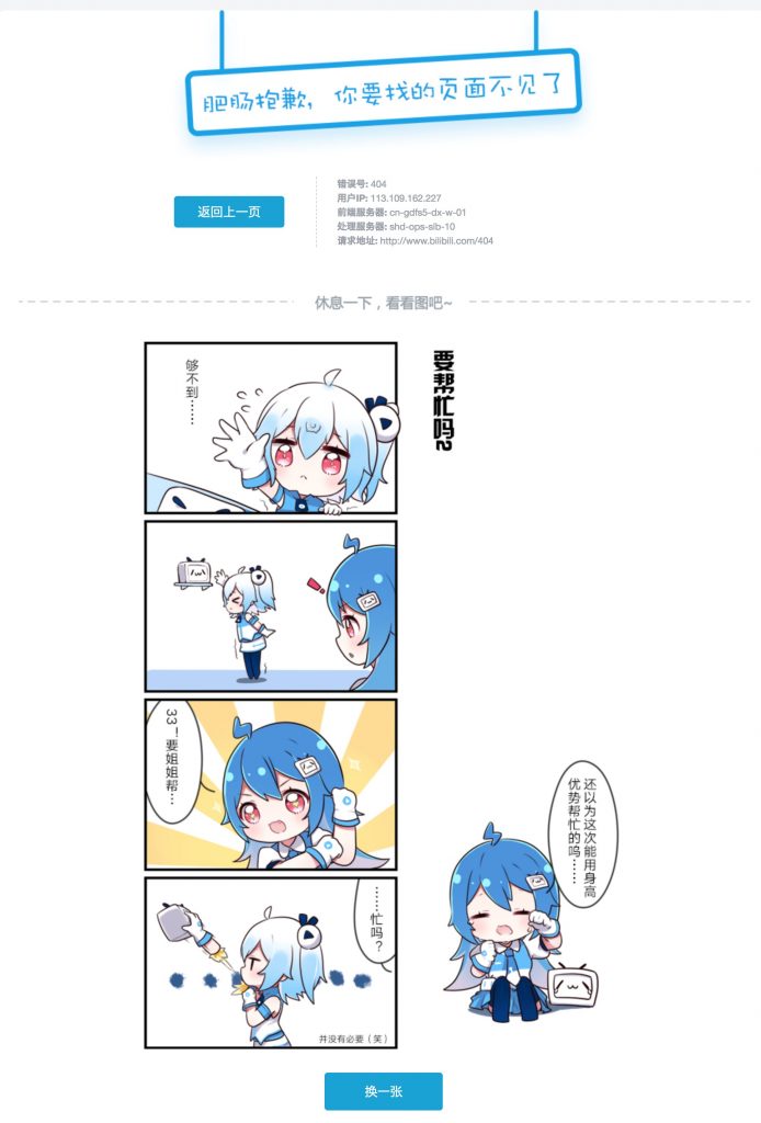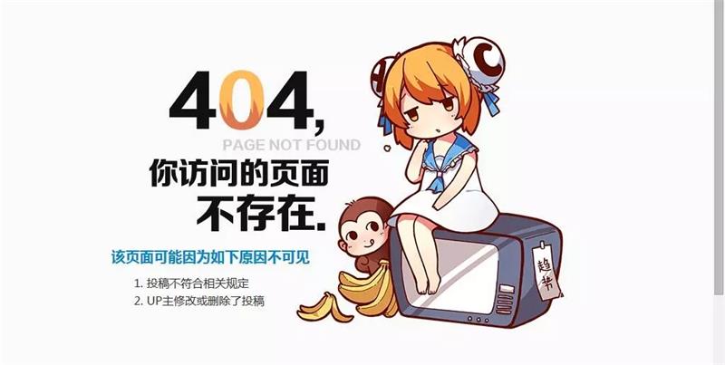 A 站的 404 頁(yè)面有著濃烈的二次元風(fēng)格,前段時(shí)間 A 站無(wú)法訪問(wèn)的幾天相信很多人都看過(guò)略帶憂傷的 AC 娘。